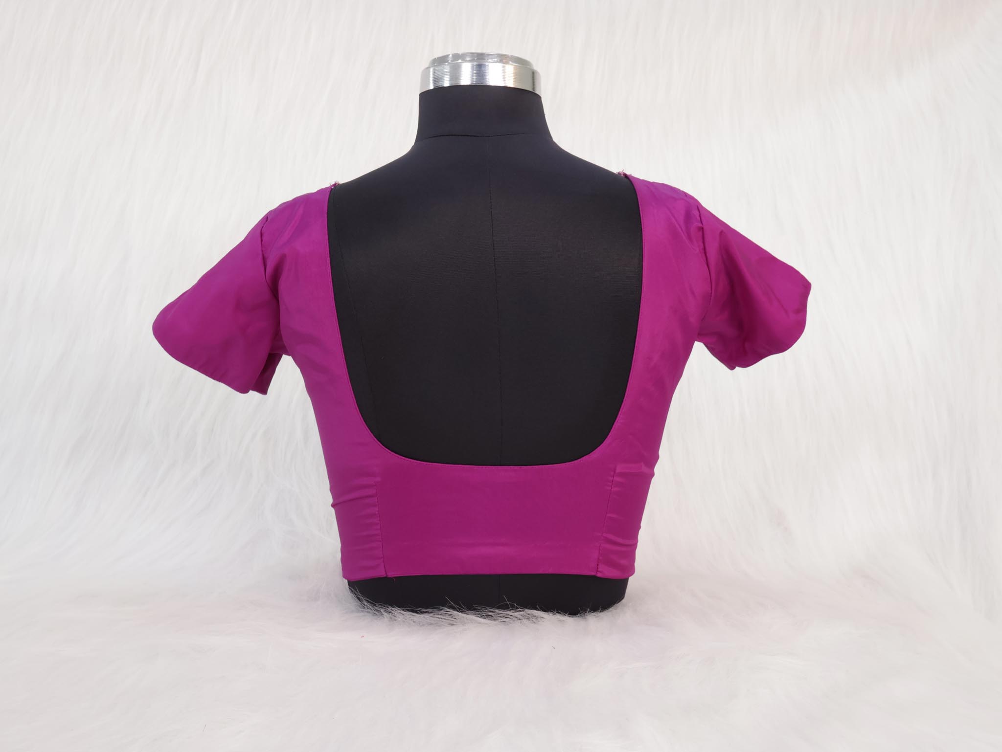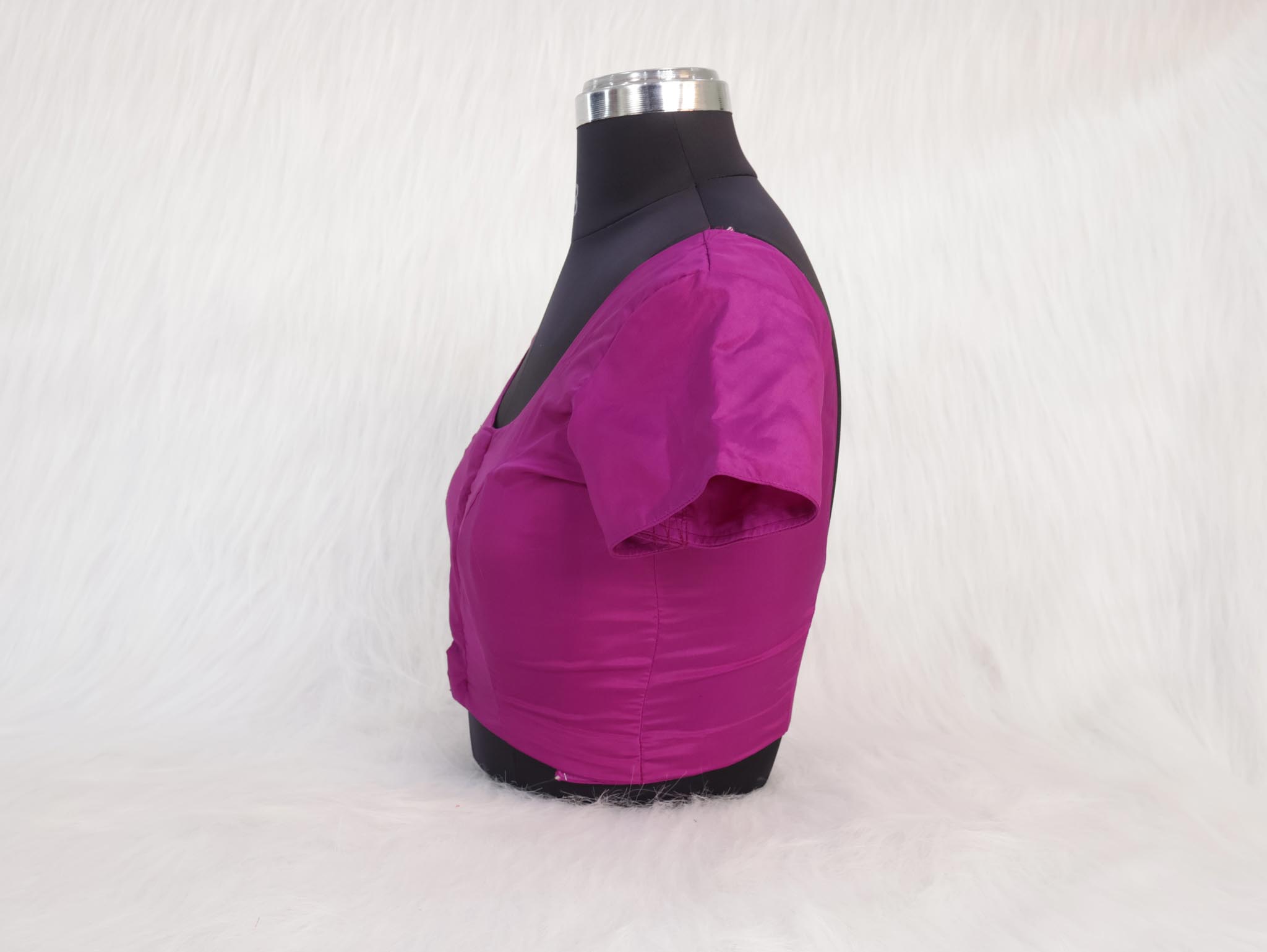 Add comfort and smart tailoring to your saree wardrobe with this elegant violet Three Darted Front Open Blouse. Designed with three front darts for improved shaping and structure, this blouse provides a flattering fit while keeping the feel relaxed and comfortable.