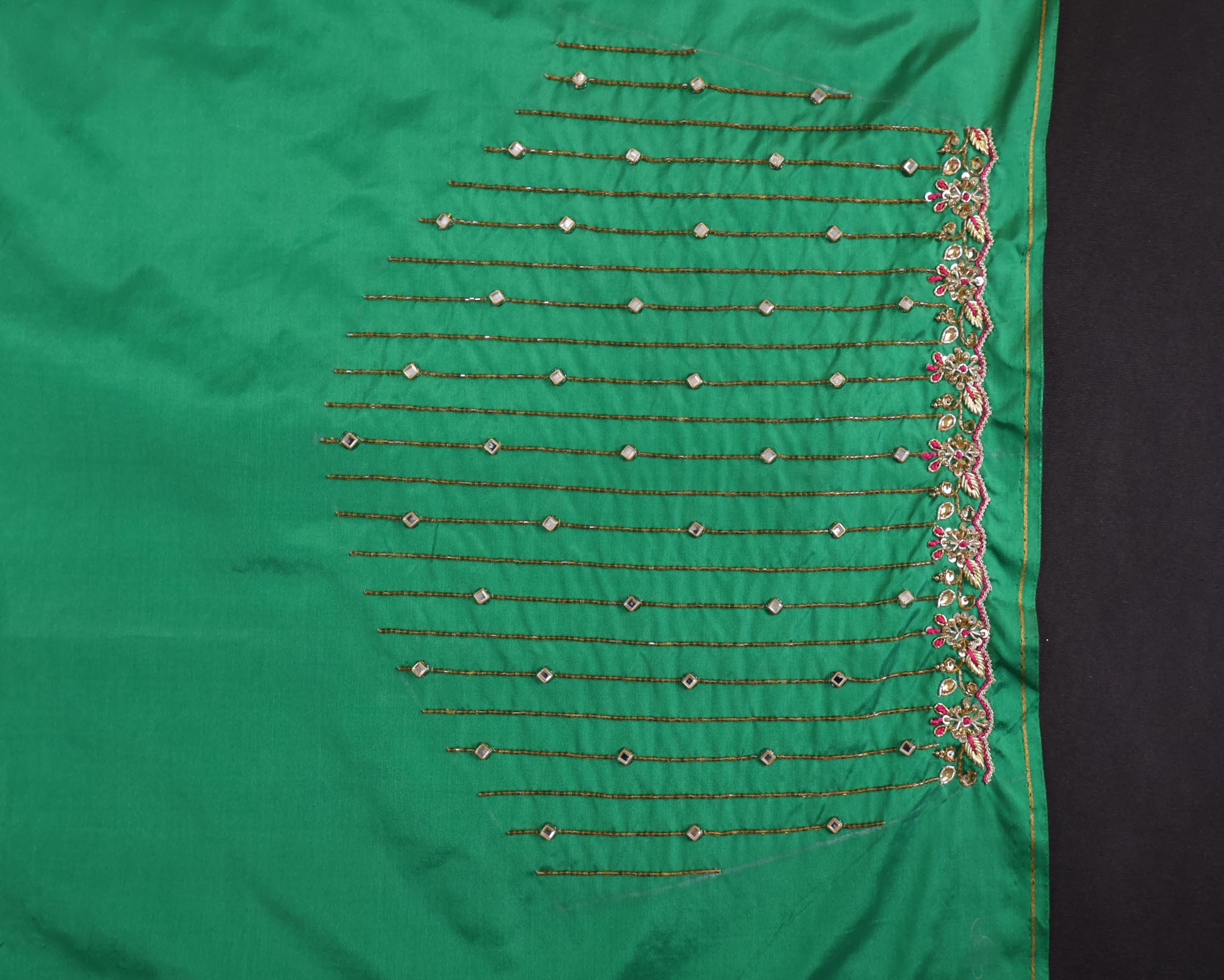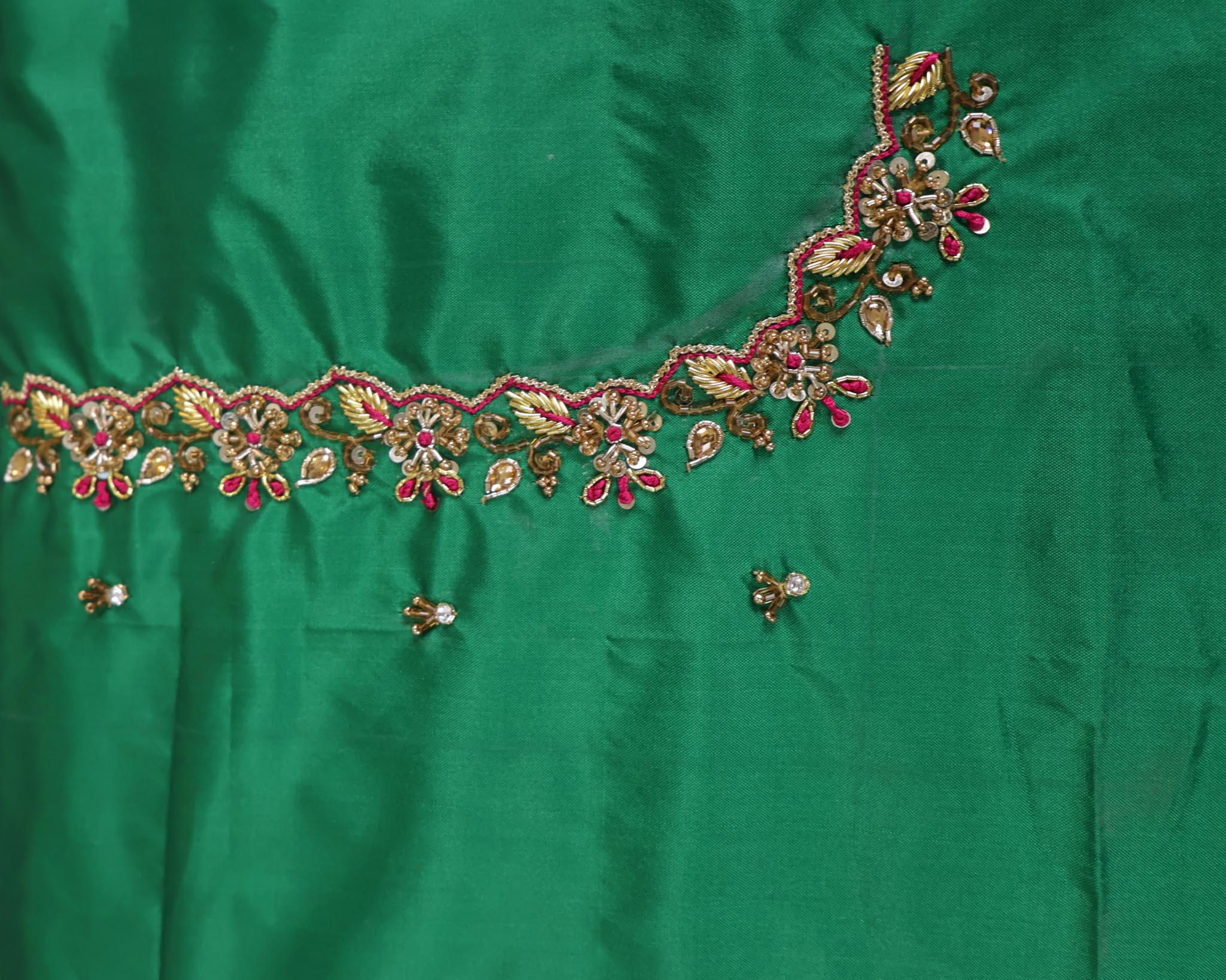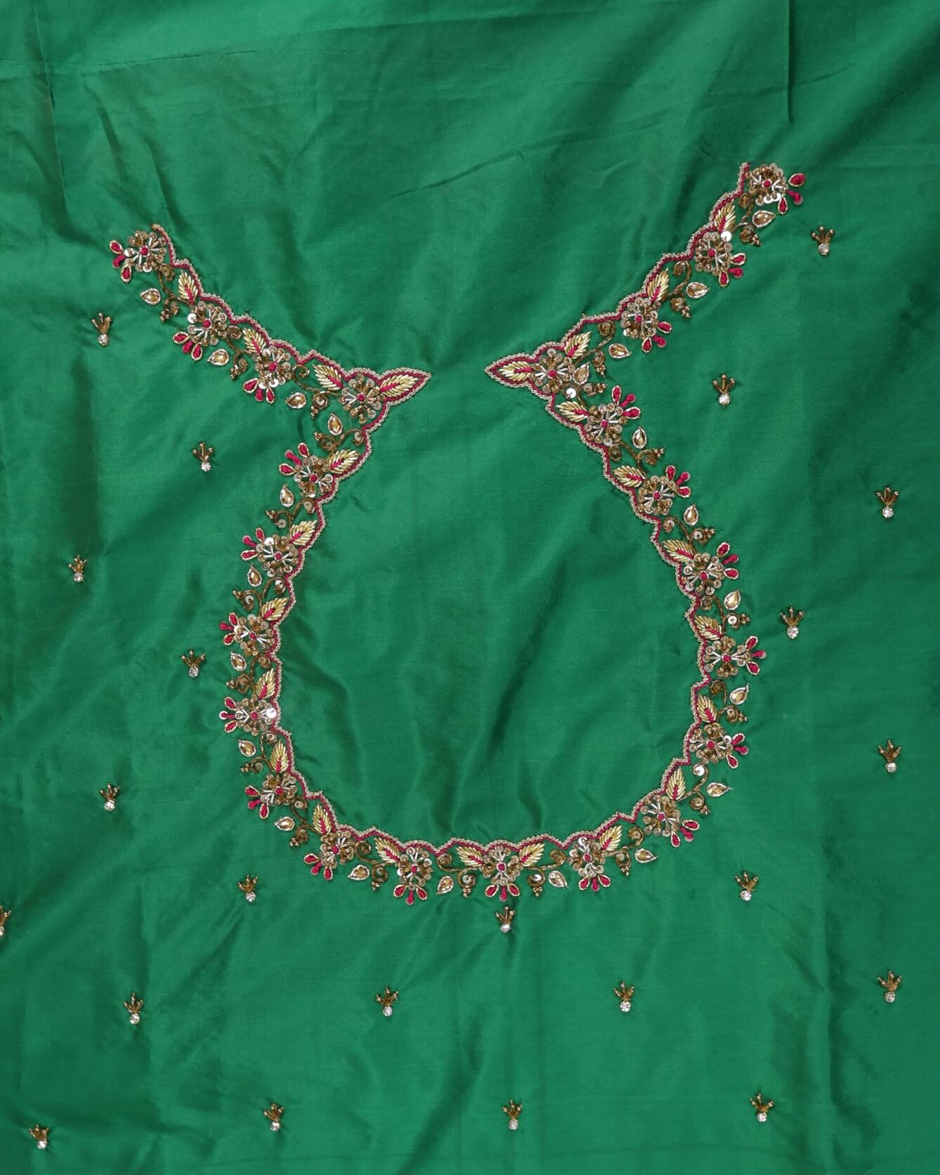 1 Meter Unstitched Maggam Work Blouse with elegant boat neck embroidery – ideal for custom stitching.
